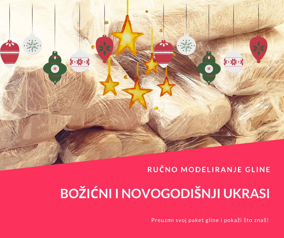 Na žalost, u prosincu nam je opet zadesila situacija koju nismo mogli kontrolirati. Povećao se broj zaraženih korona virusom i Stožer je donio strože mjere. Obustavljene su sve rizične aktivnosti kulturnog amaterizma, pa smo za korisnike morali zatvoriti i prostor ateljea. Međutim, Otvoreni keramički atelje nije prestao s radom! Projektni tim je pripremio alternativni model rada. Korisnicima ćemo pripremiti pakete materijala, a oni će dobiti zanimljive izazove, zadatke koje će raditi iz svog doma. Većinu korisnika smo uključili u online zajednicu, Facebook grupu članova Otvorenog keramičkog ateljea. Tu se dogovaramo, pokazujemo svoje radove i najavljujemo aktivnosti, tj. nove izazove. Prvi nam je izazov izrada božićnih i novogodišnjih ukrasa od terakote. Korisnici svoj paket mogu preuzeti u četvrtak i petak (10. i 11. prosinac).