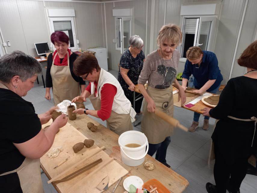 Marijana nam je pričala kako se izradom keramike počela baviti prije dvije godine, na online tečaju Keramika 54+ koji je organizirala udruga GRAK. Učitelj joj je bio petrinjski lončar Valentino Valent. U međuvremenu je puno naučila i evo, danas je podučavala druge. Kada se dijeli, znanje se množi