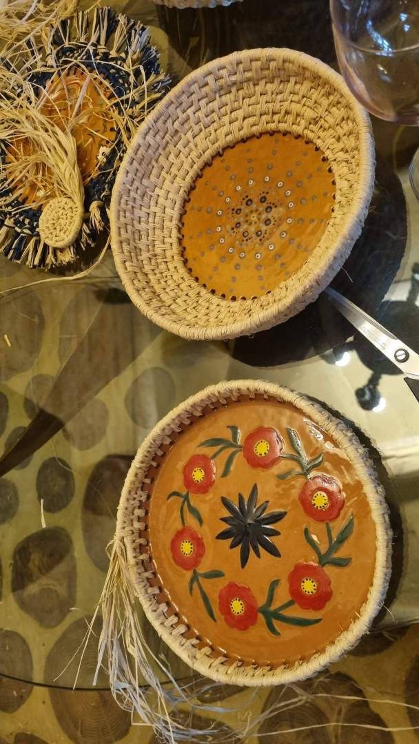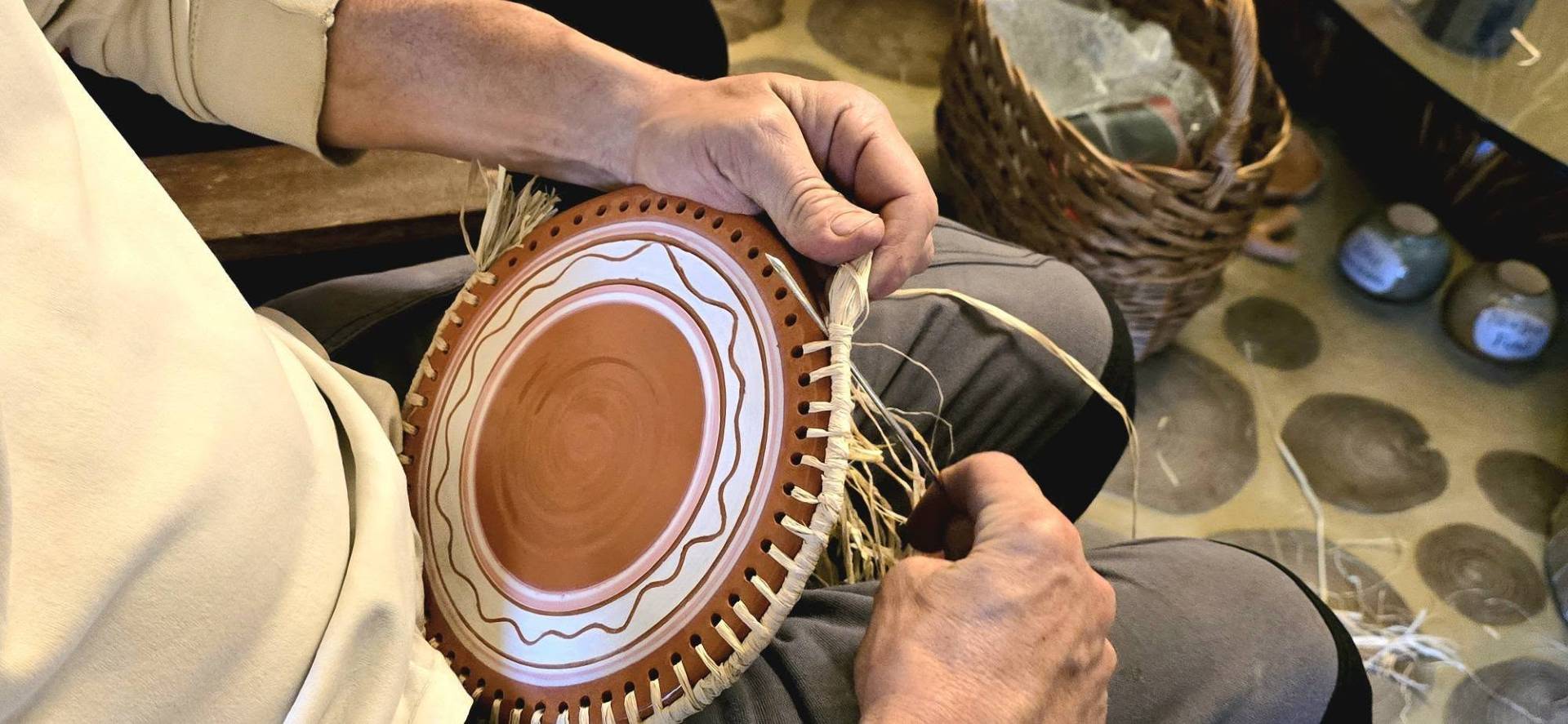 Sanja nam je pokazala kako keramičke predmete možemo „obgrliti“ rafijom – prirodnim vlaknom dobivenim iz listova rafija palme. Ovo vlakno stoljećima se koristi u različitim kulturama, od Afrike do Mediterana, za izradu košara, užadi, tekstila i ukrasnih predmeta. Posebno je cijenjeno zbog svoje izdržljivosti, fleksibilnosti i otpornosti na vlagu i sunce, a s vremenom dobiva još ljepšu, topliju patinu.