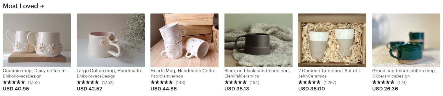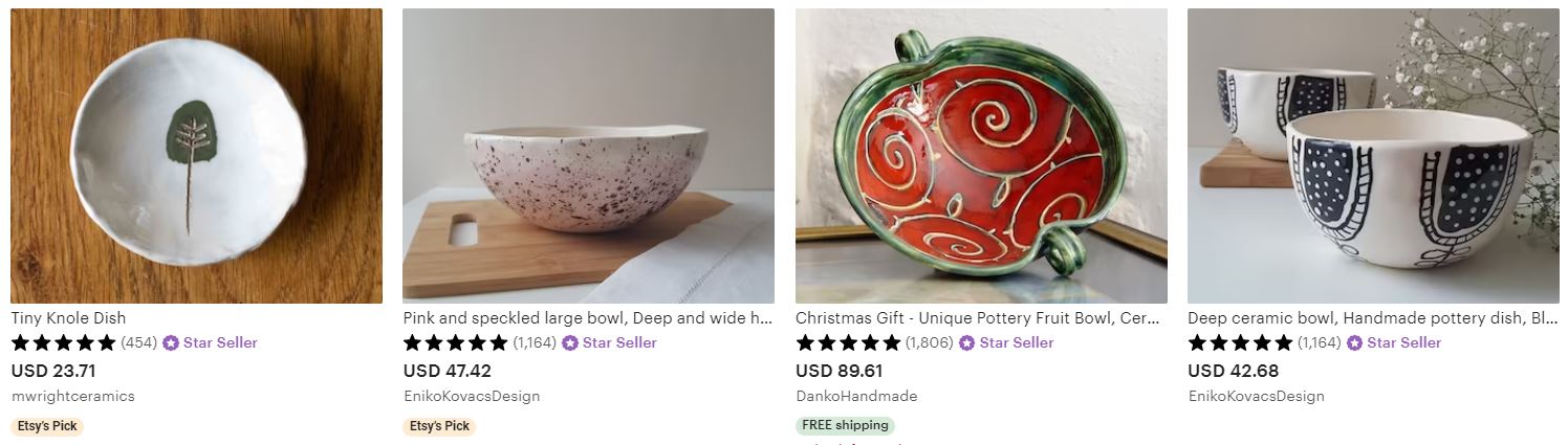 Za Etsy kažu da je vodeća tvrtka za e-trgovinu usmjerena na unikatne, ručno izrađene ili vintage predmete. Tamo se predmeti se prodaju u širokom rasponu kategorija, uključujući nakit, torbe, odjeću, kućni dekor i namještaj, igračke, umjetnost itd. Uz Etsy možete pronaći kupce na globalnom tržištu. Također, to je odlična prodajna platforma na kojoj možete provjeriti što se dobro prodaje i koliko vi možete naplatiti svoj keramički proizvod.