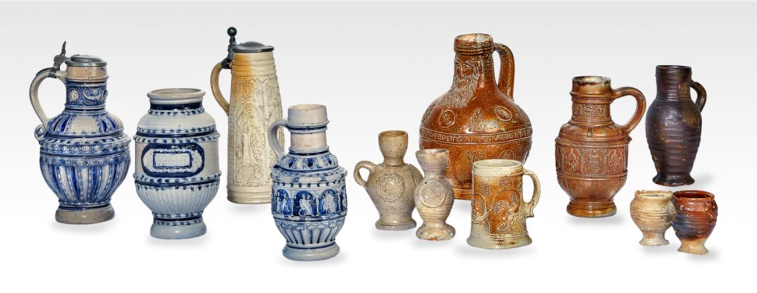 Oko sredine 13. stoljeća njemački lončari počeli su proizvoditi kameninu. Ta se keramika izrađivala od finije gline i pekla na višoj temperaturi nego zemljano posuđe. Kamenina je bila žutosmeđe ili sive boje, čvrsta i prirodno neporozna.